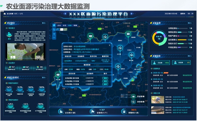 農業面源污染是導致地表水污染的主要原因。為解決農業面源污染監控中遇到的瓶頸問題,公司集成研發一套基于物聯網云計算的農業面源污染綜合監測系統。目前系統運行平穩,預測預警準確性較高,較好地實現了對農業面源污染的動態監測、跟蹤與預警。